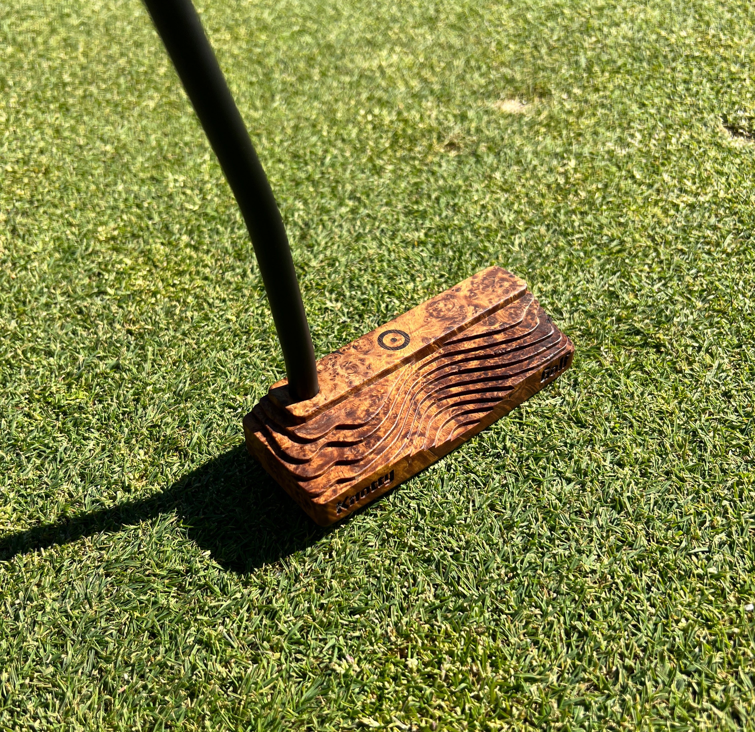 Putters are designed, cnc milled, and assembled in Massachusetts by craftsman Roscoe Martin. Each putter is one of a kind and can have varying woods, laser engravings, inlays, alignment aids, and whatever else we can dream up. Head weights can vary from 340-400+ grams. Reach out for a single putter or wholesale order!